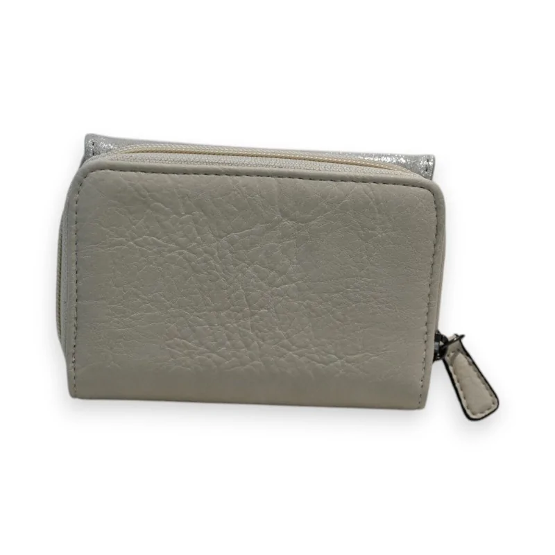 Ce portefeuille compact de la marque Mélanie Paris se distingue par son design contemporain et sa praticité. La combinaison du revêtement synthétique crème et de la finition argentée brillante crée un contraste élégant, sublimé par les détails en camel. Le fermoir aimanté assure une fermeture sécurisée tout en facilitant l'accès aux différents compartiments. Les dimensions parfaitement étudiées de 14 x 9 x 2,5 cm en font un accessoire idéal pour tous les sacs à main.