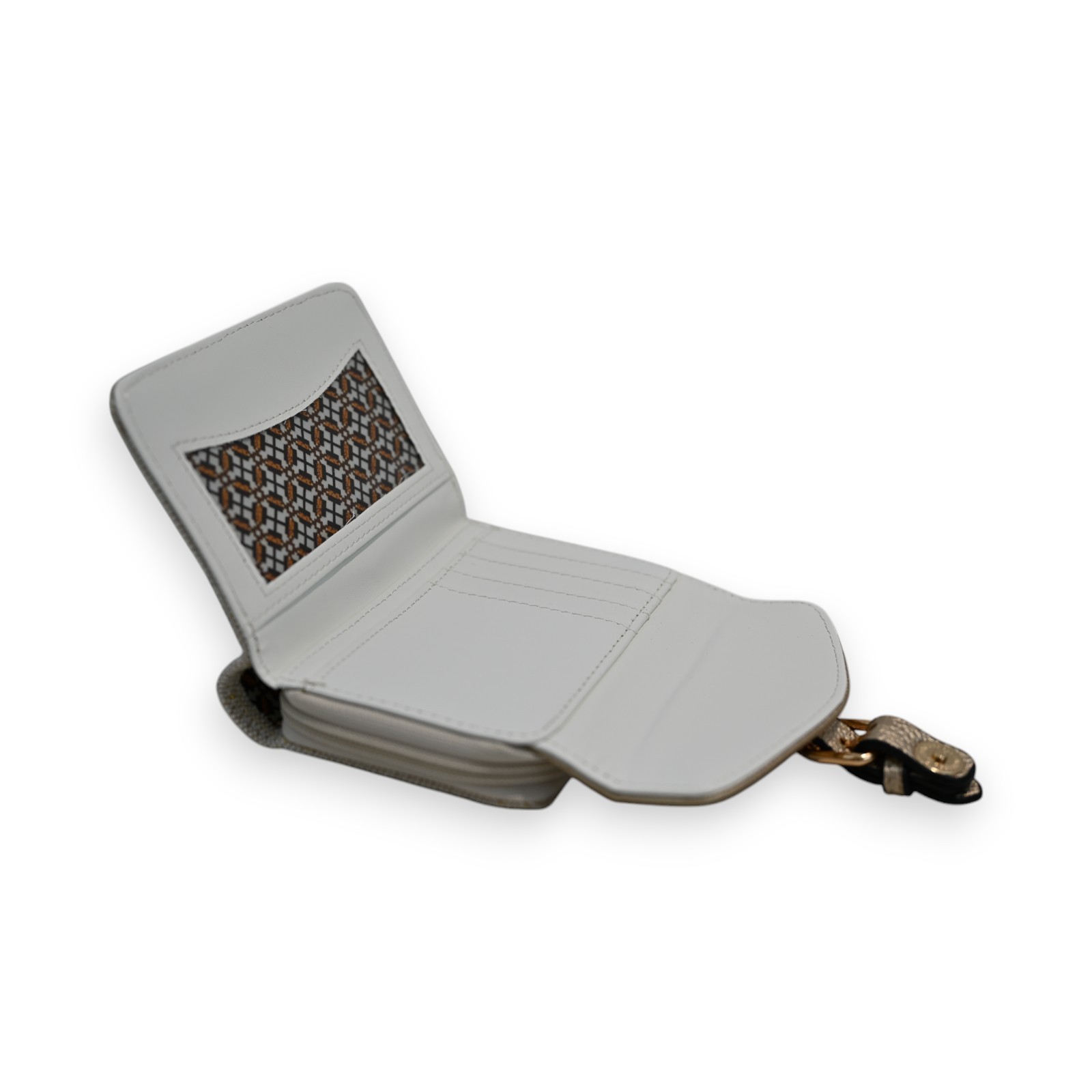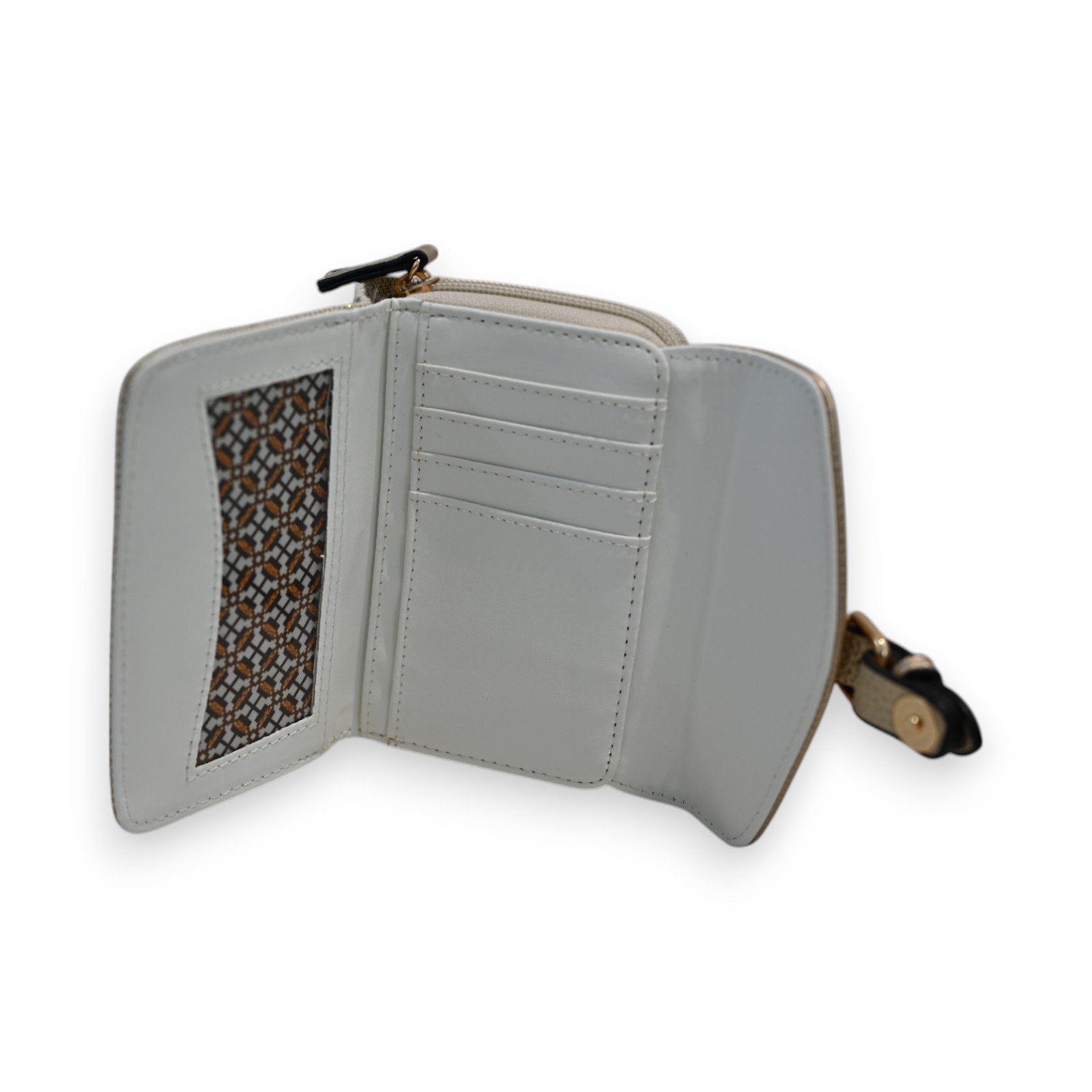 L'agencement intérieur astucieux comprend un porte-monnaie zippé central, des emplacements pour cartes et une grande poche avec fermeture éclair. Sa doublure imprimée colorée apporte une touche de fantaisie, tandis que sa conception en accordéon offre une capacité de rangement optimale tout en conservant un format compact.
