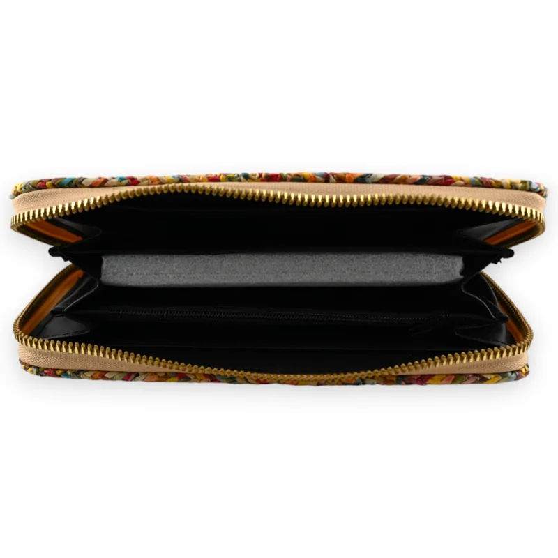 Ce portefeuille, fabriqué à partir de paille tressée, arbore des tonalités apaisantes de plusieurs couleurs estivales. Avec ses nombreux compartiments, il promet une organisation sans faille. Sa légèreté et son design unique en font l'élément parfait pour compléter et magnifier votre collection de maroquinerie.