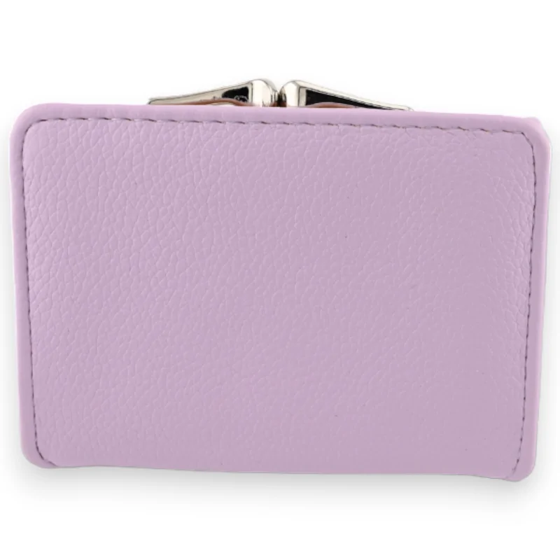 Notre portefeuille compact orné d'une représentation de chat est le compagnon idéal pour ceux qui aiment l'ordre. Il dispose d'un compartiment pour les billets, un autre pour les cartes et un espace sécurisé avec un fermoir métallique argenté pour la monnaie. Son design bicolore, parme à l'extérieur et vieux rose à l'intérieur, est à la fois tendance et élégant.