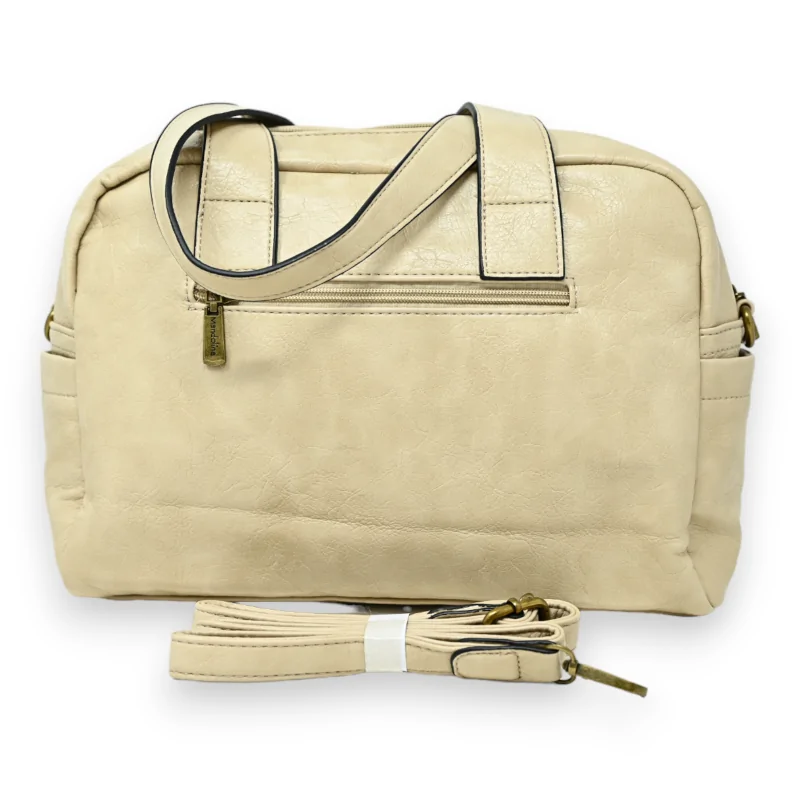 La teinte beige neutre de ce sac en fait un accessoire particulièrement versatile, capable de s'accorder avec une multitude de styles vestimentaires. Son format idéal de 40x27 cm offre suffisamment d'espace pour transporter l'essentiel sans être encombrant. La bandoulière ajustable et amovible permet de varier les styles de port selon les occasions.