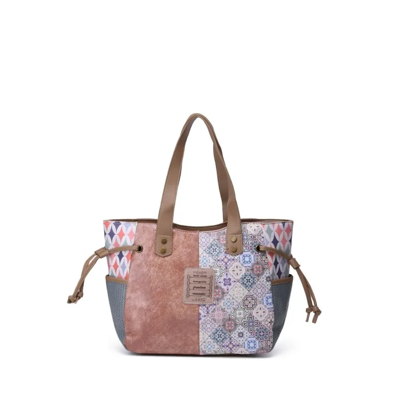 Le sac à main Sweety Candy se distingue par son design artistique unique, mêlant des motifs géométriques pastels et une illustration poétique. Sa structure en matériaux synthétiques haut de gamme allie élégance et durabilité, tandis que ses dimensions de 24x28x11 cm offrent un espace de rangement optimal pour vos effets personnels.
