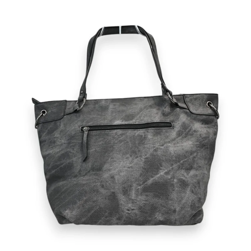 Le sac à main Mélanie Paris se distingue par son design contemporain alliant différentes textures dans un patchwork harmonieux de tons gris et noir. Sa conception en matière synthétique délavée lui confère un aspect tendance et moderne, parfait pour un usage quotidien.