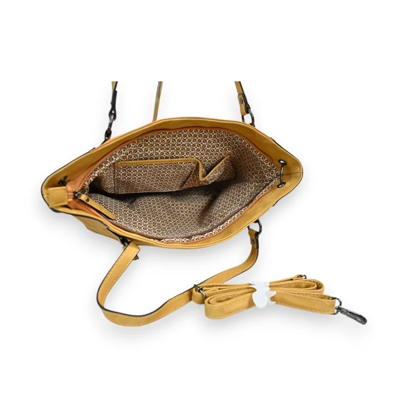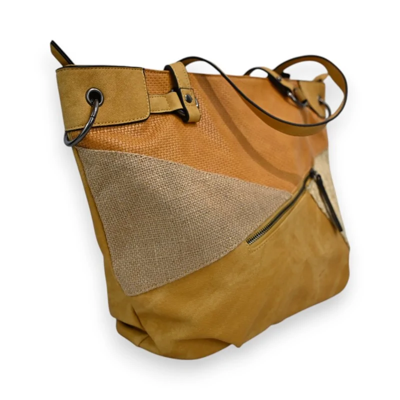 Ce sac à main Mélanie Paris incarne l'alliance parfaite entre style et fonctionnalité. Son design unique en patchwork de différentes textures dans les tons moutarde apporte une touche d'originalité à votre tenue. Doté de multiples rangements et d'une bandoulière amovible, il s'adapte à tous vos besoins quotidiens.