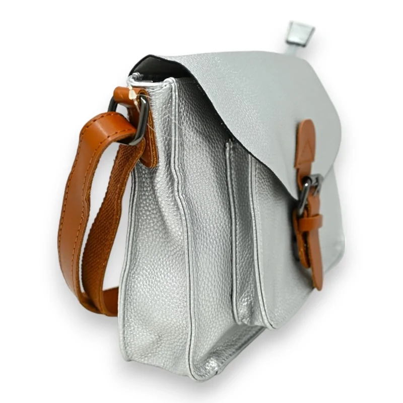 Illuminez votre style avec notre sac cartable bandoulière argenté, un parfait mariage entre élégance intemporelle et praticité moderne. Inspiré des sacs d'école classiques mais revisité pour la femme active d'aujourd'hui, ce sac allie beauté et fonctionnalité. Son fermoir aimanté sécurise vos effets personnels tout en offrant un accès facile à un intérieur astucieusement organisé. Avec ses dimensions de 25 cm x 6 cm x 18 cm, il devient l'accessoire idéal pour apporter une touche de brillance métallique à votre tenue quotidienne.