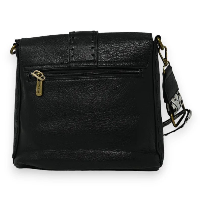 Ce sac bandoulière, conçu en matière synthétique de haute qualité, arbore une couleur noire et imite avec précision l'aspect et la texture du cuir. Il est équipé d'un rabat sécurisé par un système de fermeture magnétique, agrémenté d'une boucle en métal brossé, ajoutant une touche esthétique notable. Le compartiment principal, accessible via une fermeture éclair, est divisé en deux parties pour faciliter l'organisation. Des poches plaquées sont situées sur les côtés pour un rangement supplémentaire. Le sac dispose également d'une fermeture zippée à l'arrière et d'une sangle ajustable et modifiable pour un port confortable. Avec des dimensions de 23x23 cm, ce sac allie fonctionnalité et style moderne.