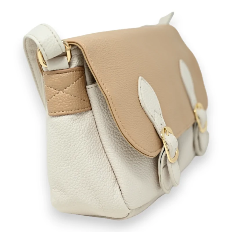 Ce sac bandoulière, d'inspiration cartable, se présente dans une élégante combinaison de couleurs beige et taupe, réalisée en matériau synthétique de haute qualité qui reproduit avec finesse l'aspect du cuir. Conçu pour la praticité autant que pour le style, il dispose de deux sangles magnétiques pour une ouverture facile, tout en sécurisant vos essentiels. L'avant du sac est agrémenté de deux poches pratiques, tandis que l'intérieur révèle une grande poche munie d'une séparation centrale, optimisant l'organisation, accompagnée de poches plaquées pour un rangement méthodique. Une poche zippée à l'arrière offre un espace supplémentaire sécurisé pour les objets de valeur. Avec ses dimensions compactes de 25x20 cm, ce sac est l'accessoire idéal pour celui qui cherche à allier fonctionnalité et élégance dans un quotidien dynamique.