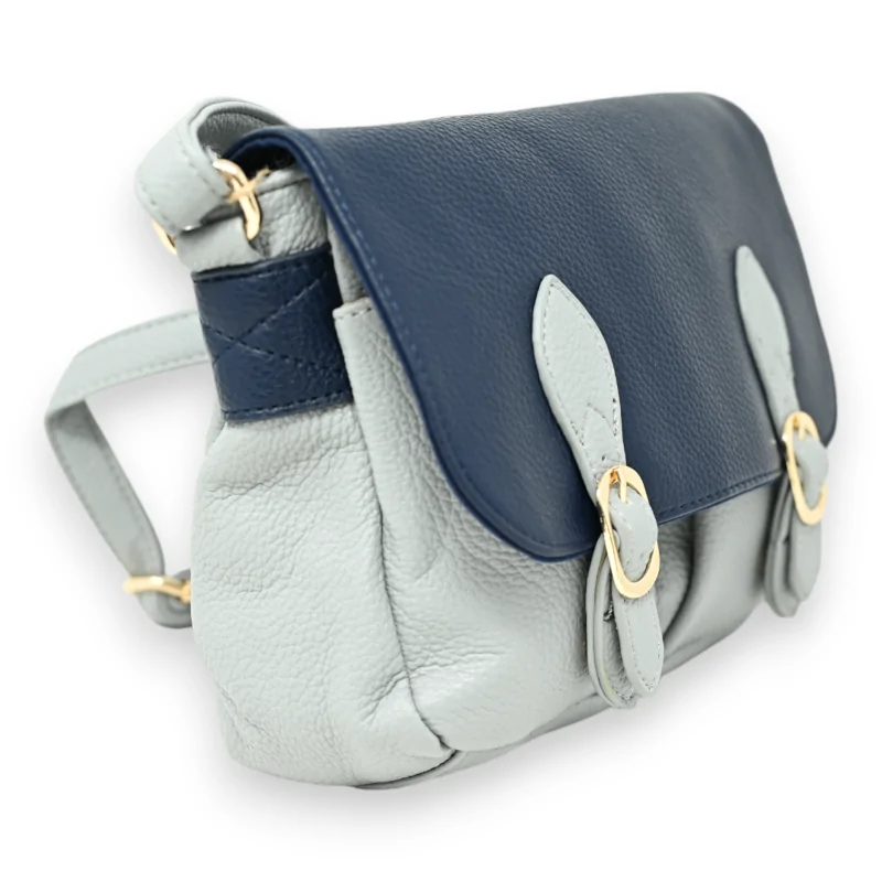 Découvrez le sac bandoulière idéal pour votre garde-robe, mêlant harmonieusement fonctionnalité et tendance. Son design, inspiré du cartable, est exécuté dans un matériau synthétique aux teintes de beige et de bleu jeans, imitant à la perfection la texture luxueuse du cuir. Les deux sangles magnétiques facilitent l'accès à un intérieur spacieux, divisé par une séparation centrale pour une organisation impeccable, complétée par des poches plaquées pour un rangement astucieux. Une poche zippée à l'arrière offre un espace sécurisé pour les indispensables. Avec ses dimensions pratiques de 25x20 cm, ce sac est un choix excellent pour ceux qui valorisent à la fois l'esthétique et la fonctionnalité au quotidien.