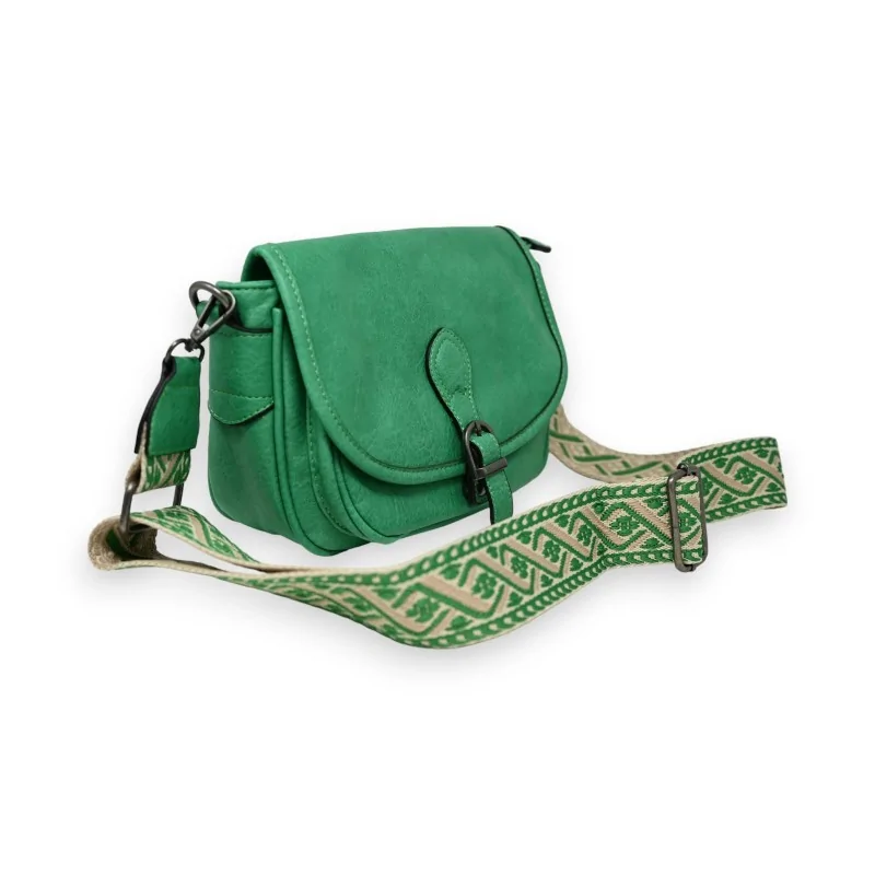 Ce sac bandoulière rond, teinté d'un vert Brésil dynamique, est à la fois pratique et stylé. Il dispose d'un rabat avec fermeture magnétique et une sangle pour une ouverture aisée. Le compartiment frontal ajoute de la praticité, tandis que la grande poche centrale, dotée de poches internes plaquées, offre un espace généreux pour vos nécessités quotidiennes, sécurisé par une fermeture éclair. Le sac est également équipé d'une poche arrière pour un accès rapide à vos effets personnels. Les options de portage incluent une sangle en tissu assortie avec motifs ou une sangle en synthétique de la même couleur, mesurant 25x19 cm, parfaite pour un usage quotidien.