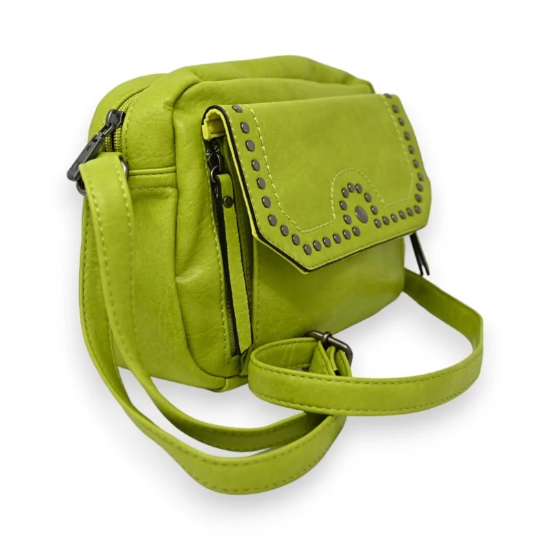 Ce sac bandoulière, conçu dans un format carré et réalisé en matériau synthétique vert anis, imite à la perfection la texture du cuir tout en offrant une flexibilité et une qualité supérieure. Son design est rehaussé par des clous métalliques élégants sur la poche avant, ajoutant une touche chic et contemporaine. Cette poche est sécurisée par une fermeture à pression aimantée, tandis que deux petites poches latérales zippées offrent des options supplémentaires pour organiser vos effets personnels. À l'intérieur, vous trouverez une poche centrale spacieuse avec des poches plaquées sur les côtés, idéales pour ranger vos articles de manière ordonnée. Une poche zippée à l'arrière permet un accès rapide aux nécessités quotidiennes. La sangle en synthétique assortie est réglable, assurant un port confortable et personnalisé. Avec des dimensions de 25 cm de largeur par 20 cm de hauteur, ce sac est non seulement pratique mais aussi un ajout stylé à toute garde-robe.