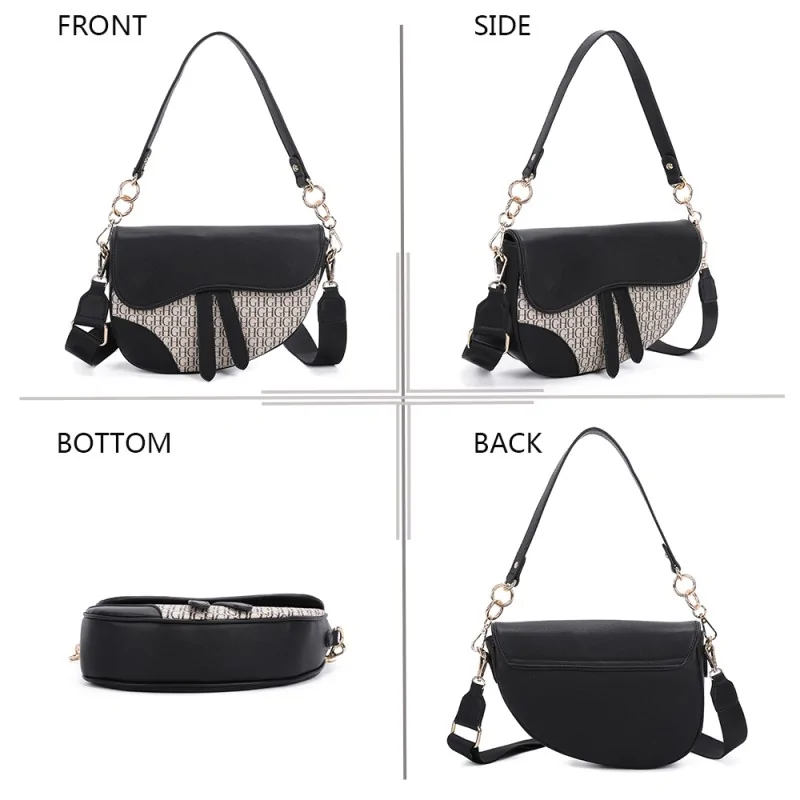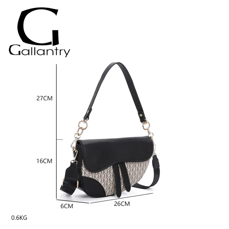 Ce sac à main bandoulière allie parfaitement style et fonctionnalité. Son design bicolore associant le noir élégant à un motif monogramme beige lui confère une allure chic et tendance. Avec ses dimensions de 26x16 cm, il offre un format compact idéal pour transporter l'essentiel au quotidien tout en restant léger. La bandoulière amovible permet de varier les styles de port : à l'épaule pour un look décontracté ou à la main pour une allure plus sophistiquée.