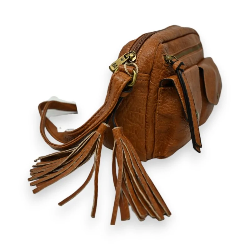 Le sac bandoulière Mandoline en couleur camel est l'accessoire idéal pour un look élégant et pratique au quotidien. Fabriqué en synthétique de haute qualité imitant parfaitement le cuir, ce sac compact de 25x18cm offre de multiples rangements grâce à ses nombreuses poches. Sa bandoulière réglable assure un confort optimal pour toutes vos sorties.
