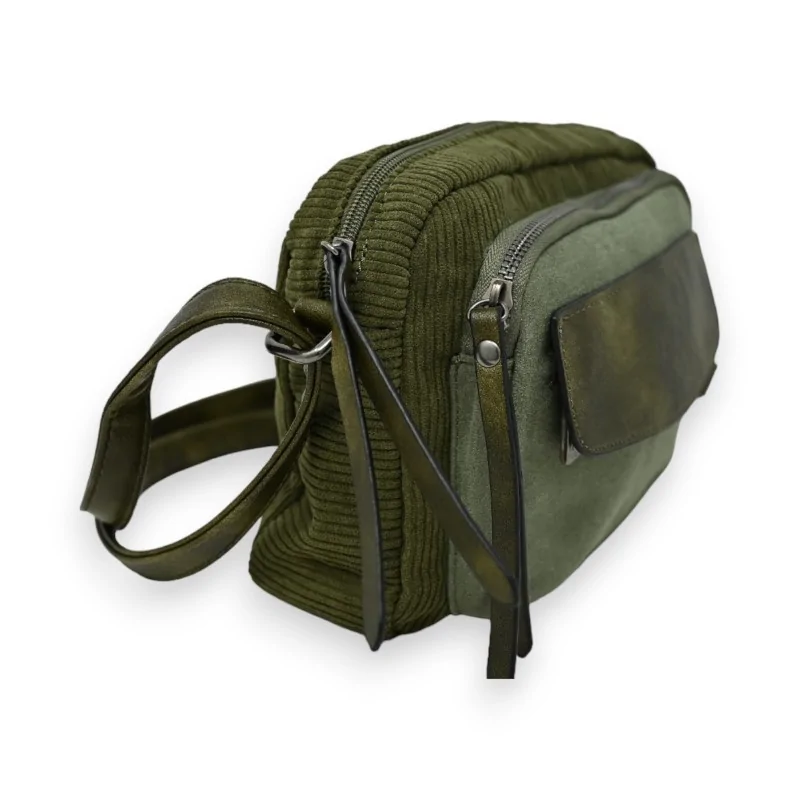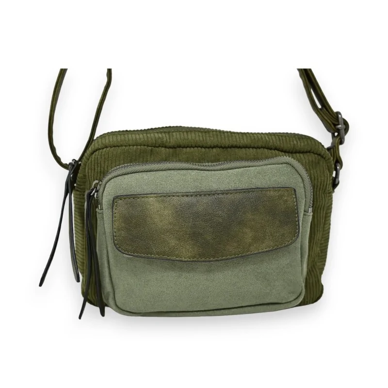 Ce sac bandoulière Mandoline allie originalité et praticité. Confectionné en 3 tissus différents - velours, suédine et synthétique - il offre un look unique et tendance. Compact avec ses dimensions de 24x18cm, il dispose de plusieurs poches fonctionnelles : une poche en relief sur le devant, une poche centrale avec rangements intérieurs et une poche à l'arrière. Sa bandoulière réglable assure un port confortable. Un accessoire idéal pour un style affirmé au quotidien.