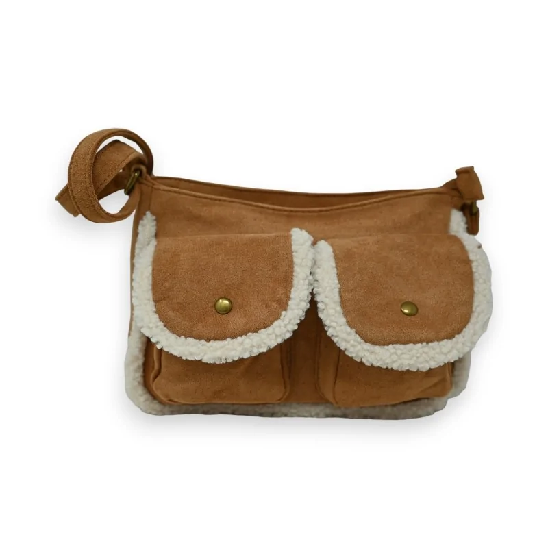 Le sac bandoulière Mandoline allie style et praticité. Son tissu en suédine ultra douce et ses finitions moumoute beige sur le devant lui confèrent un look tendance et chaleureux. Compact avec ses dimensions de 25x17cm, il dispose de multiples poches pour une organisation optimale : 2 poches en relief à l'avant, une poche centrale avec rangements intérieurs et une poche arrière. Sa bandoulière réglable permet un port confortable adapté à toutes les morphologies.