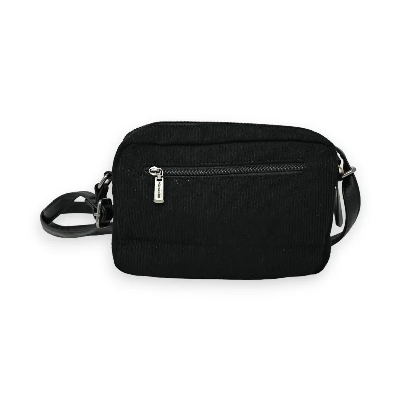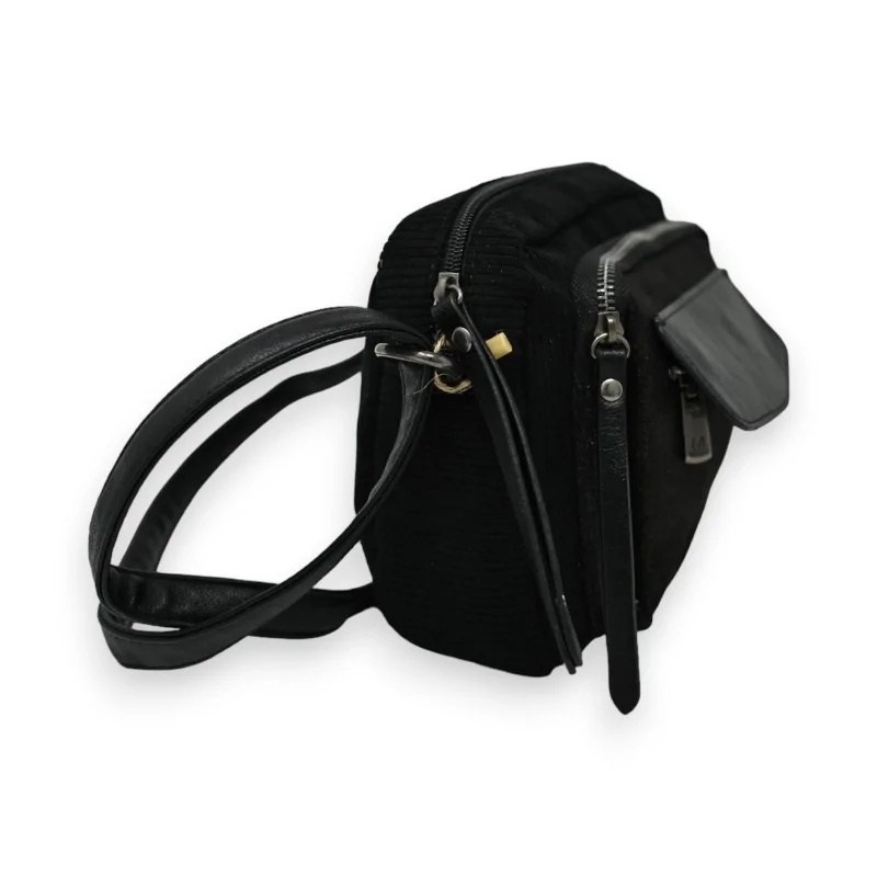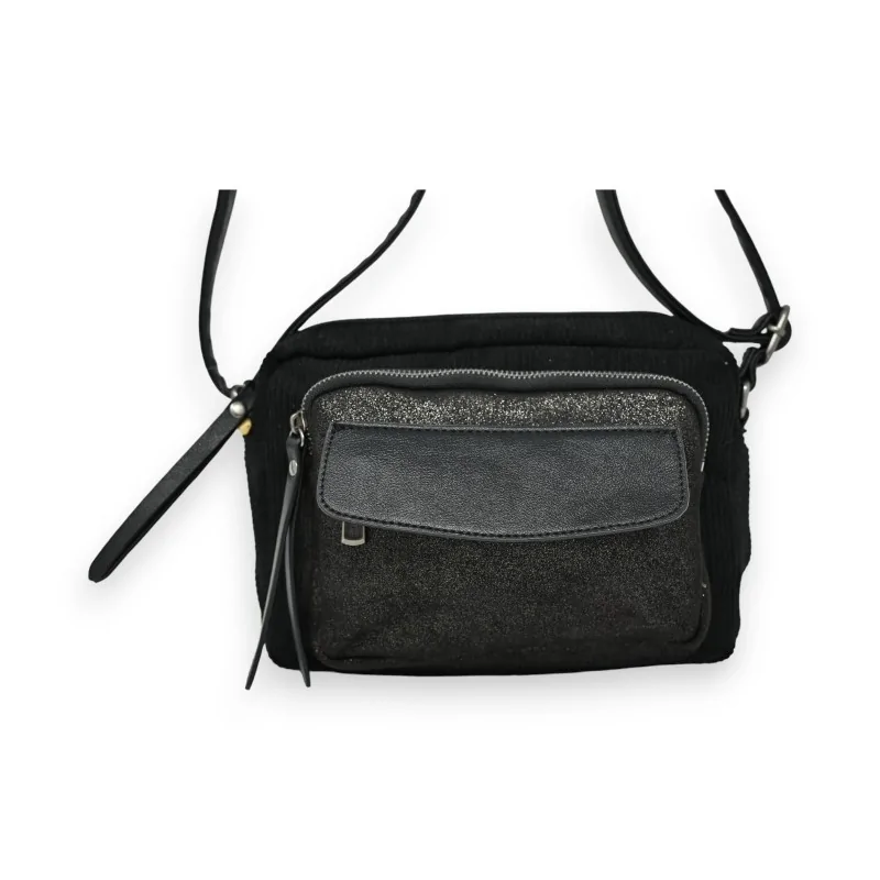 Le sac bandoulière velours noir Mandoline allie élégance et praticité. Composé de trois matières différentes - velours, synthétique et suédine scintillante - ce sac compact de 24x18cm offre de multiples rangements grâce à ses poches avant, centrale et arrière. Sa bandoulière réglable permet un port confortable adapté à toutes les morphologies. Un accessoire chic et fonctionnel pour compléter vos tenues au quotidien.