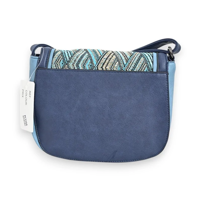 Le sac bandoulière Mélanie Paris se distingue par son style contemporain et raffiné. Sa structure rigide lui confère une allure sophistiquée, sublimée par un motif tissé unique aux nuances harmonieuses de bleu et de beige. Le rabat, élément signature de ce modèle, présente une finition impeccable avec sa forme géométrique et sa fermeture aimantée discrète. Les finitions en cuir synthétique bleu marine sur les bordures apportent une touche d'élégance supplémentaire.