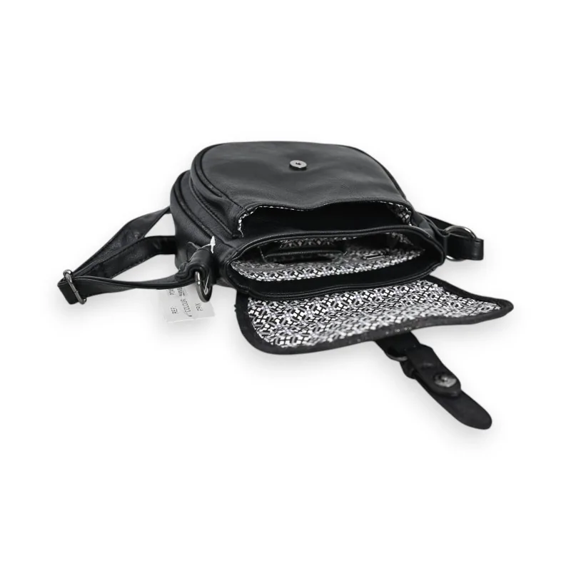 Le sac bandoulière Mélanie Paris se distingue par son design vintage et fonctionnel. Confectionné en matière synthétique noire de qualité, il arbore une conception pensée pour le quotidien avec son rabat à fermeture aimantée et ses nombreux compartiments intelligemment répartis.