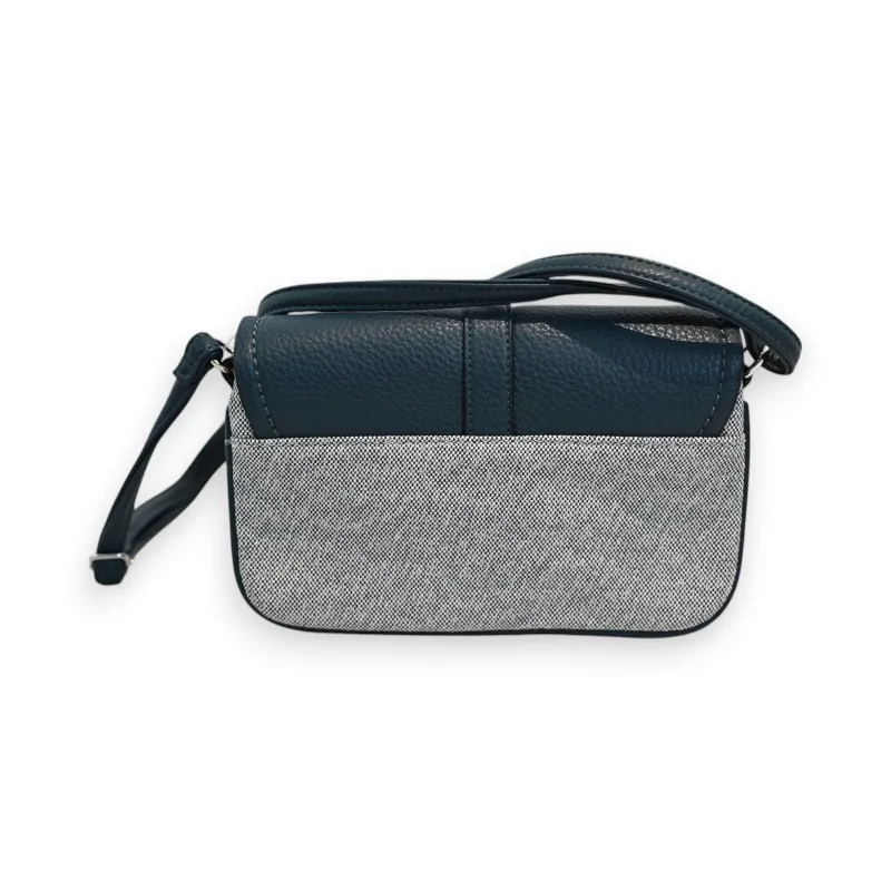 Ce sac bandoulière de la collection Mélanie Paris allie élégance et fonctionnalité grâce à sa conception en bi-matière associant un synthétique bleu pétrole sophistiqué à une toile de lin mouchetée bleue. Son rabat élégant doté d'une pression aimantée dissimule trois compartiments généreux pour une organisation optimale de vos effets personnels.