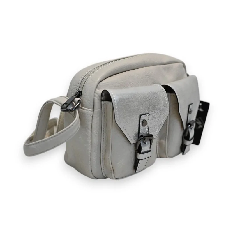 Ce sac bandoulière Mélanie Paris allie élégance et praticité avec son design contemporain en synthétique beige de haute qualité. Doté de deux poches frontales distinctes avec rabats argentés et fermetures aimantées, il offre une organisation optimale de vos effets personnels. Son compartiment principal spacieux est agrémenté de poches latérales dont une zippée, le tout souligné par une doublure imprimée raffinée.