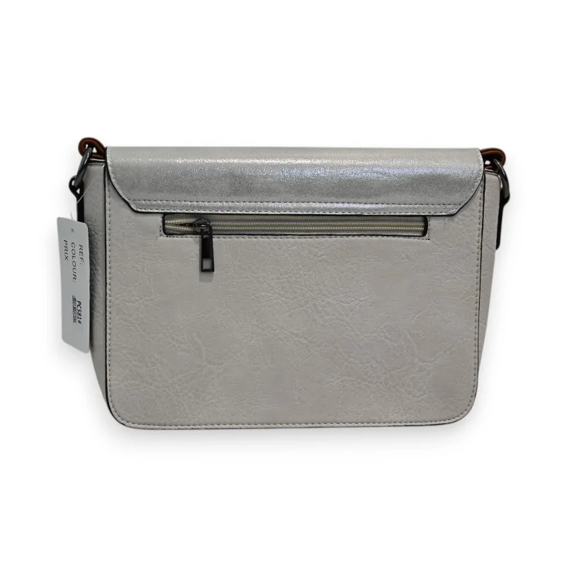 Le sac bandoulière Mélanie Paris allie élégance et fonctionnalité avec son design contemporain. Son rabat argenté brillant est sublimé par deux sangles camel aimantées qui apportent une touche de raffinement. La grande poche centrale offre un espace de rangement optimal, complété par des poches latérales pratiques dont une zippée pour plus de sécurité.