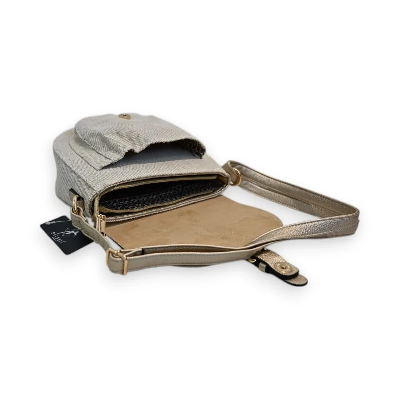 Le sac bandoulière Mélanie Paris se distingue par sa conception alliant matériaux nobles et finitions soignées. La combinaison du lin beige et des détails en synthétique doré crée un contraste élégant, sublimé par les fils lurex dorés qui apportent une touche de brillance subtile. Le rabat arrondi, orné d'une sangle assortie aimantée, offre une fermeture à la fois sécurisée et esthétique. La qualité des matériaux sélectionnés garantit une durabilité optimale tout en maintenant une légèreté appréciable au quotidien.