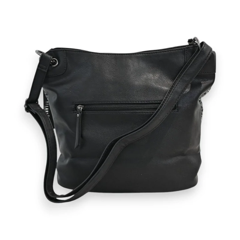 Le sac bandoulière Mélanie Paris se distingue par son design contemporain mêlant élégamment bi-matière synthétique noire et patchwork aux nuances de noir et gris. Ses dimensions de 31 x 27 x 13 cm en font un accessoire idéal pour un usage quotidien, alliant style et fonctionnalité.