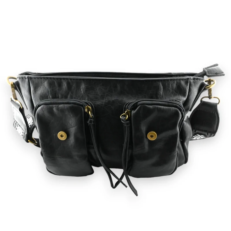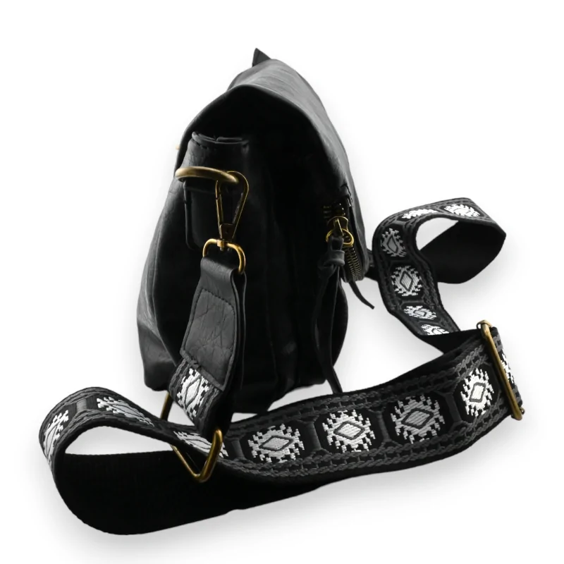Élégant et fonctionnel, ce sac bandoulière noir se distingue par sa remarquable sangle en tissu à motif fantaisie, ajoutant une touche d'originalité. Sur le devant, il présente deux pochettes visibles soigneusement sécurisées par des fermetures éclair, idéales pour des accès rapides à vos essentiels. En plus de sa fermeture éclair principale, le sac arbore un rabat arrondi intégrant astucieusement une pochette pour plus d'espace de rangement. L'intérieur est conçu pour une organisation optimale : une pochette centrale spacieuse est complétée par des poches plaquées. De plus, une pochette supplémentaire se trouve à l'arrière du sac, offrant un espace discret pour des objets fins. Avec des dimensions de 30x22 cm, ce sac combine style et praticité pour le quotidien.