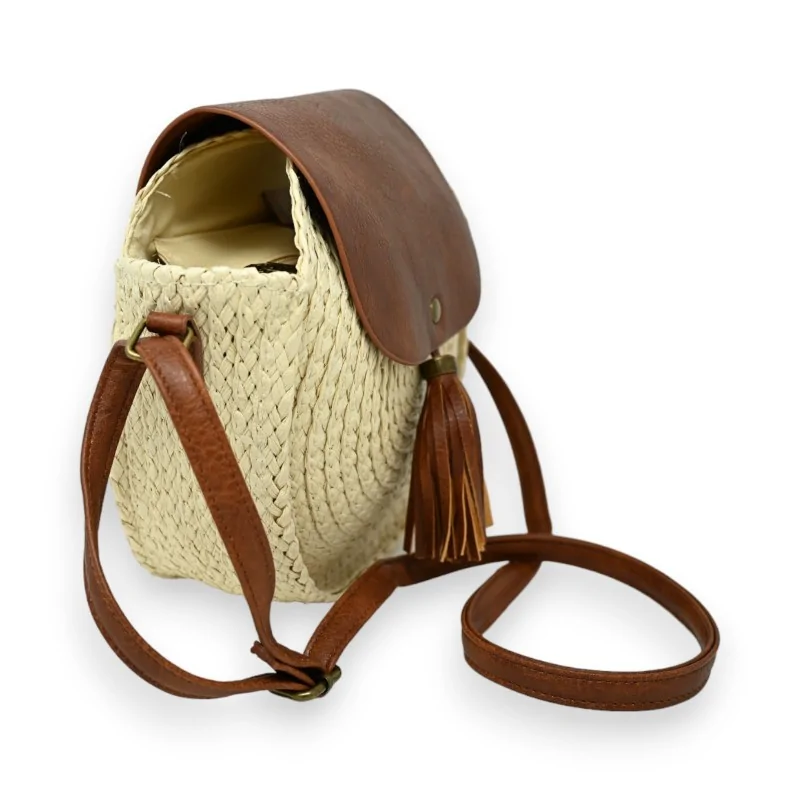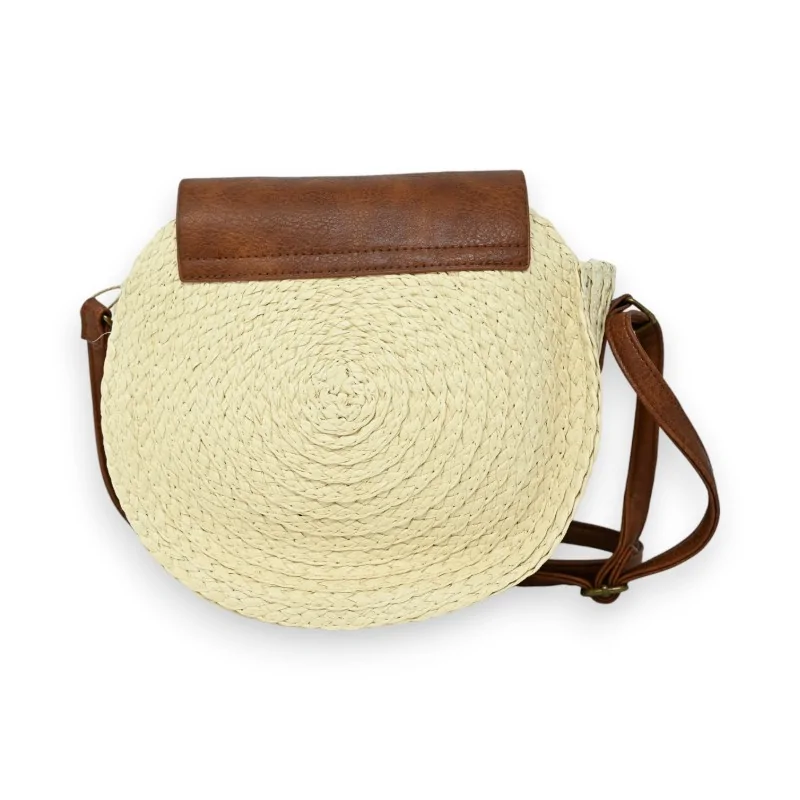 Explorez le charme bohème avec ce sac bandoulière rond, conçu dans une élégante teinte beige clair agrémentée de finitions en synthétique marron. Le rabat avant, en harmonie avec la sangle ajustable, confère au sac un look cohérent et stylé. La grande poche intérieure, équipée de poches plaquées, offre ample espace pour ranger et accéder facilement à vos objets personnels. Mesurant 24 cm de diamètre et 26 cm de hauteur, ce sac est non seulement pratique mais aussi un véritable atout mode, idéal pour celles qui apprécient les accessoires à la fois beaux et utiles. Parfait pour les sorties décontractées ou comme complément chic à une tenue de festival, ce sac est sûr de capturer l'attention et d'ajouter une touche de sophistication décontractée à votre style.