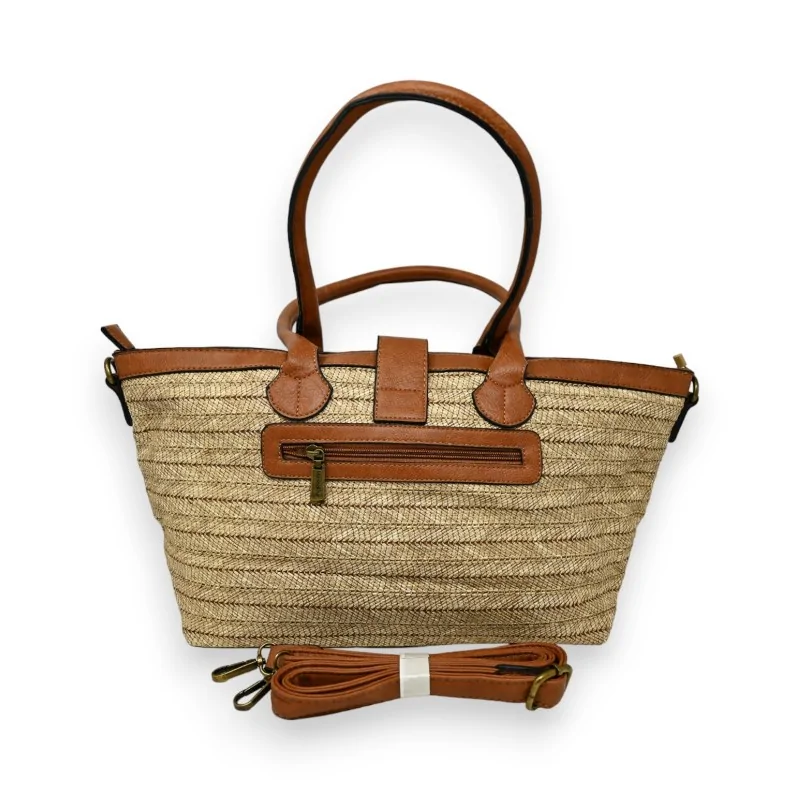 Transportez-vous dans l'ambiance envoûtante de l'esprit bohème avec ce magnifique sac à main en paille. Sa forme évoque instantanément l'image d'un panier rustique, ajoutant une touche authentique à votre style. Avec des dimensions généreuses de 45 sur 25 centimètres, il offre un espace spacieux et pratique pour transporter toutes vos nécessités quotidiennes. Les anses rigides en synthétique marron garantissent une prise en main confortable et robuste, tandis que le système d'ouverture magnétique avec sa sangle à boucle vieillie ajoute une touche de charme vintage. À l'intérieur, une grande poche centrale avec fermeture éclair et des poches plaquées sur les côtés assurent un rangement organisé de vos effets personnels. De plus, une sangle amovible vous permet de le porter élégamment en bandoulière pour une liberté de mouvement optimale. Ce sac à main incarne parfaitement l'esprit bohème, offrant à la fois style et fonctionnalité pour vos aventures quotidiennes.