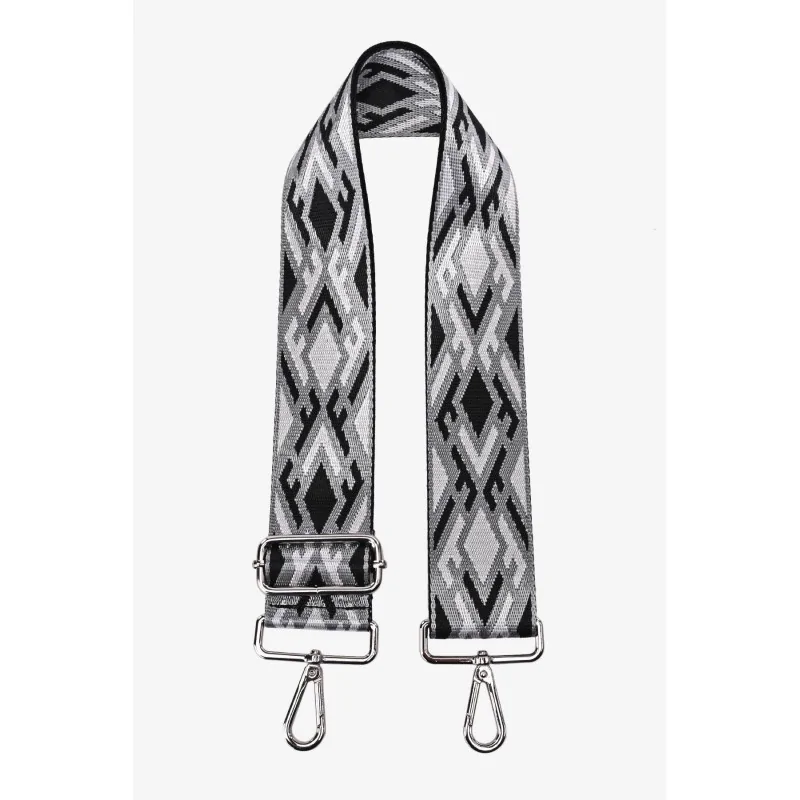Cette bandoulière en tissu tendance arbore un imprimé géométrique noir et gris du plus bel effet. D'une largeur confortable de 5 cm, elle offre une longueur ajustable de 60 à 120 cm pour s'adapter à toutes les morphologies. Son mousqueton argenté apporte une touche de modernité et permet de l'attacher facilement à votre sac préféré. Un accessoire polyvalent et élégant pour personnaliser vos looks au quotidien.