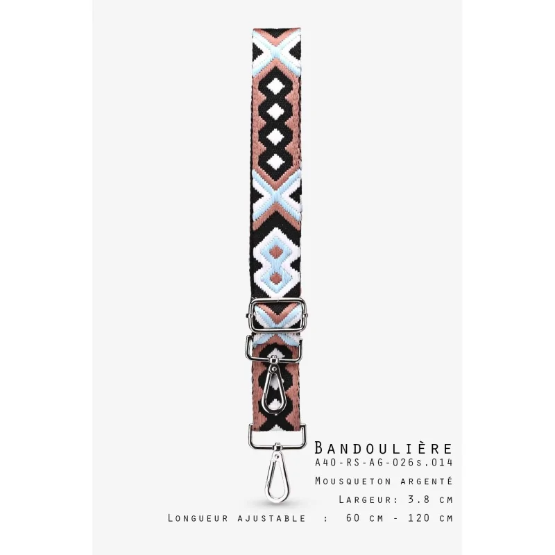 Ajoutez une touche bohème chic à vos tenues avec cette bandoulière au motif ethnique tendance. Son imprimé géométrique aux teintes douces de bleu, marron et noir apporte une note d'originalité à vos sacs. La sangle en tissu de 3.8cm de large offre un confort optimal, tandis que sa longueur réglable de 60 à 120cm s'adapte à toutes les morphologies. Le mousqueton argenté permet une fixation facile et sécurisée à votre sac préféré.