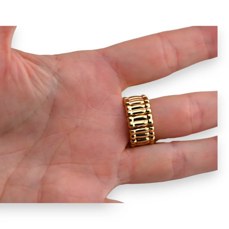 Magnificamente modellata, questa fascia fantaisie è impreziosita da un raffinato rivestimento dorato con un diametro di 3,7 cm. Al centro di questa meraviglia si trova un'imponente pietra marrone, il cui splendore è enfatizzato da un'aureola di pietre dorate scintillanti. Quando indossata, diventa un vero e proprio gioiello, aggiungendo un tocco di eleganza a qualsiasi outfit. Progettata per il comfort, la sua taglia elastica garantisce una perfetta vestibilità per tutti, rendendo questo anello altrettanto piacevole da indossare quanto bello da vedere.