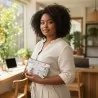 Questa borsa di cotone è il riflesso di uno stato d'animo positivo e gioioso. La sua stampa "HAPPY" evoca gioia e allegria, trasformando istantaneamente la tua giornata in un'avventura soleggiata. Questa borsa misura 20x14 cm, una dimensione ideale per accompagnarti nelle tue attività quotidiane. La stampa Liberty dai toni verde, blu e rosa aggiunge un tocco di freschezza e dinamicità a questa borsa. I motivi floreali sono allo stesso tempo carini ed eterni, aggiungendo un tocco di romanticismo all'insieme. La chiusura lampo di questa borsa non è solo pratica, ma è anche arricchita da una pon-pon, che aggiunge un tocco di sofisticazione e fantasia all'insieme. Ti permette di accedere rapidamente ai tuoi oggetti, aggiungendo un tocco ludico a questo pezzo. Questa borsa di cotone è un vero strumento di organizzazione per la tua vita quotidiana. Che tu stia cercando di organizzare chiavi, prodotti per il trucco, documenti o altri oggetti essenziali, ti accompagnerà con stile. Può essere scivolata nel tuo borsone, zaino o anche usata come borsa da viaggio.