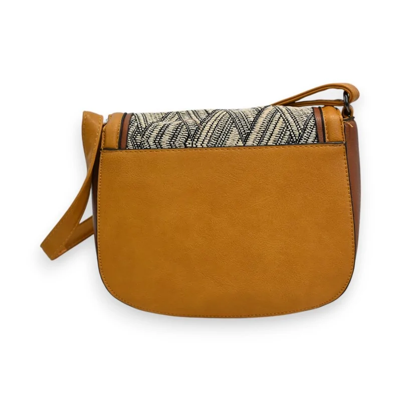 La borsa a tracolla Mélanie Paris incarna l'eleganza francese con il suo design bicolore senape e cammello. La patta decorata con una tessitura di fili dorati e neri aggiunge un tocco di sofisticazione unico. Il design funzionale offre molteplici scomparti con una grande tasca centrale e tasche applicate, di cui una con zip, per un'organizzazione ottimale.