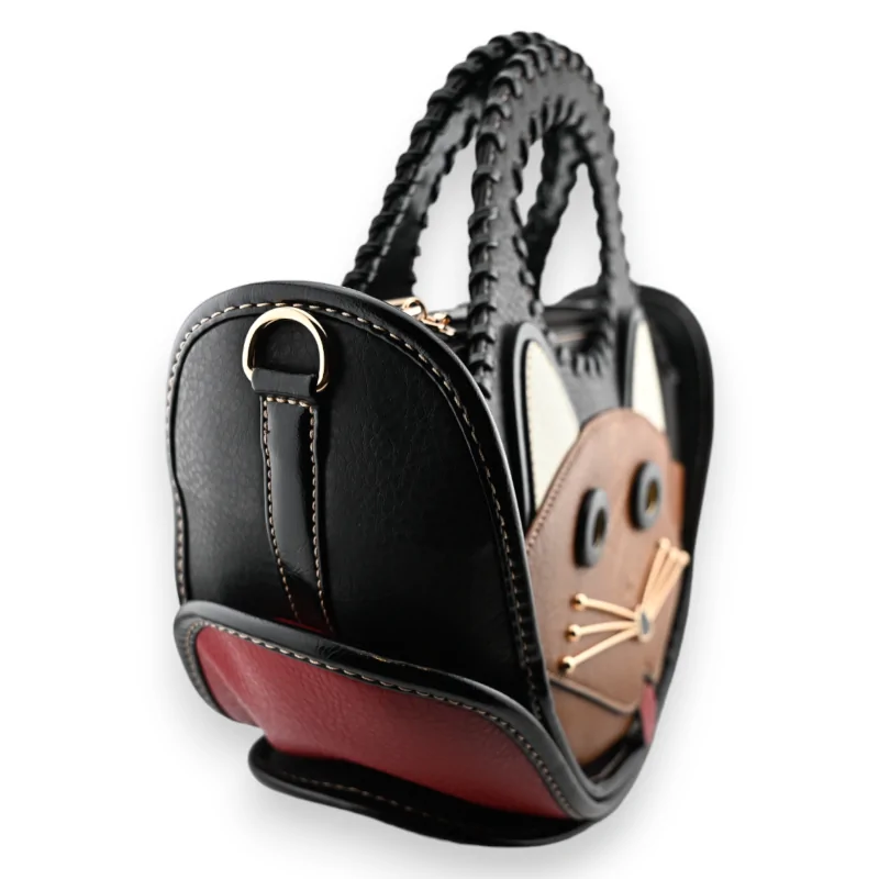 Questa borsa, unica e affascinante, è stata creata per conquistare gli amanti dei felini. Indossa con orgoglio al centro una testa di gatto rialzata di colore cammello, un elemento centrale che cattura immediatamente l'attenzione. I dettagli dei baffi dorati conferiscono eleganza e raffinatezza, trasformando questa borsa in un oggetto desiderabile e chic. Progettato con manici robusti, assicura un'elegante e comoda presa, ideale per occasioni in cui si desidera mostrare un look distintivo. Per una maggiore flessibilità nell'uso, la borsa è dotata anche di una tracolla rimovibile all'interno, che consente di indossarla in modi diversi per soddisfare meglio le tue preferenze e le tue esigenze del momento. Questa borsa si distingue per la sua combinazione di tessuti, che le conferisce un carattere originale e singolare. Il suo design distintivo e attraente la rende il preferito degli amanti dei gatti e di coloro che cercano un elemento giocoso per arricchire la propria collezione di moda. Con le sue dimensioni pratiche di 20 cm in larghezza, 15 cm in profondità e 20 cm in altezza, offre uno spazio adeguato per i tuoi oggetti essenziali senza sacrificare il suo aspetto compatto e sofisticato. Realizzata interamente in materiale sintetico, questa borsa rappresenta un'alternativa durevole ed eco-sostenibile, perfetta per coloro che cercano di unire stile, praticità e coscienza ambientale.