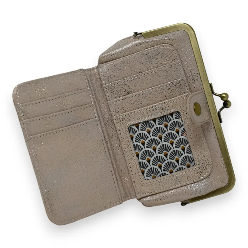 L'interno rivela un'organizzazione ottimale con una fodera in tessuto dai motivi colorati. Il design a fisarmonica offre un'ampia capacità di archiviazione con un portamonete centrale con cerniera, scomparti per carte e tasche versatili. La tasca laterale con cerniera garantisce una protezione aggiuntiva per i tuoi effetti personali.