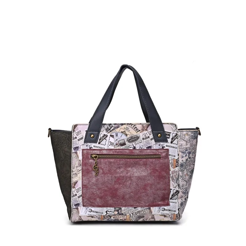 La borsa Sweety Candy si distingue per la sua illustrazione esclusiva che cattura l'essenza stessa del viaggio. Il design presenta una composizione artistica dai toni delicati e armoniosi, mescolando grigio antracite e rosa cipria. I dettagli minuziosi come i motivi vintage, i timbri e gli elementi decorativi creano un'atmosfera nostalgica che evoca l'avventura e l'evasione. La qualità di stampa e le finiture accurate assicurano la durabilità del motivo nel tempo.