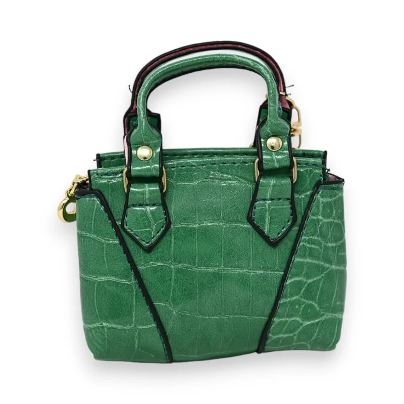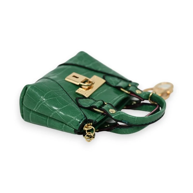 Adotta uno stile distintivo con questo portachiavi e portamonete verde brillante, che presenta una finitura effetto coccodrillo per un tocco di esotismo. Progettato per imitare una mini borsa chic, questo accessorio è perfetto per coloro che apprezzano i dettagli raffinati. Al centro, un lucchetto dorato arricchisce visualmente l'insieme garantendo al contempo la sicurezza dei tuoi beni. È inoltre dotato di un moschettone e di un anello a gancio, che ti permettono di appenderlo facilmente alle tue chiavi, borse o altri supporti pratici. La piccola chiusura lampo offre uno spazio sicuro per le tue monete o altri piccoli oggetti essenziali. Con le sue dimensioni pratiche di 11 x 8 cm, questo portachiavi non è solo funzionale ma aggiunge anche un tocco di eleganza alla tua collezione di accessori.
