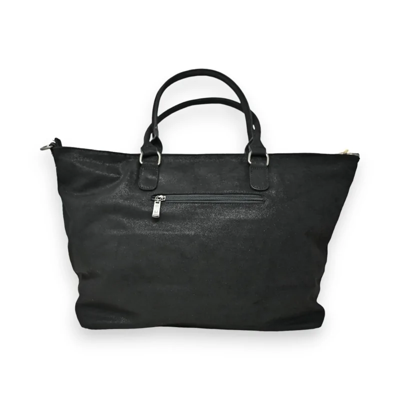 Questa grande borsa Mandoline combina stile e praticità. In morbida pelle scamosciata nera leggermente lucida, sfoggia con orgoglio una stella scintillante al centro che le conferisce un look chic e alla moda. Le sue dimensioni generose di 51x31 cm offrono uno spazio di archiviazione ottimale, mentre il manico rigido e la tracolla rimovibile e regolabile consentono di portarla in diversi modi. Con la sua ampia tasca centrale e i compartimenti interni, saprà adattarsi a tutte le vostre esigenze quotidiane.