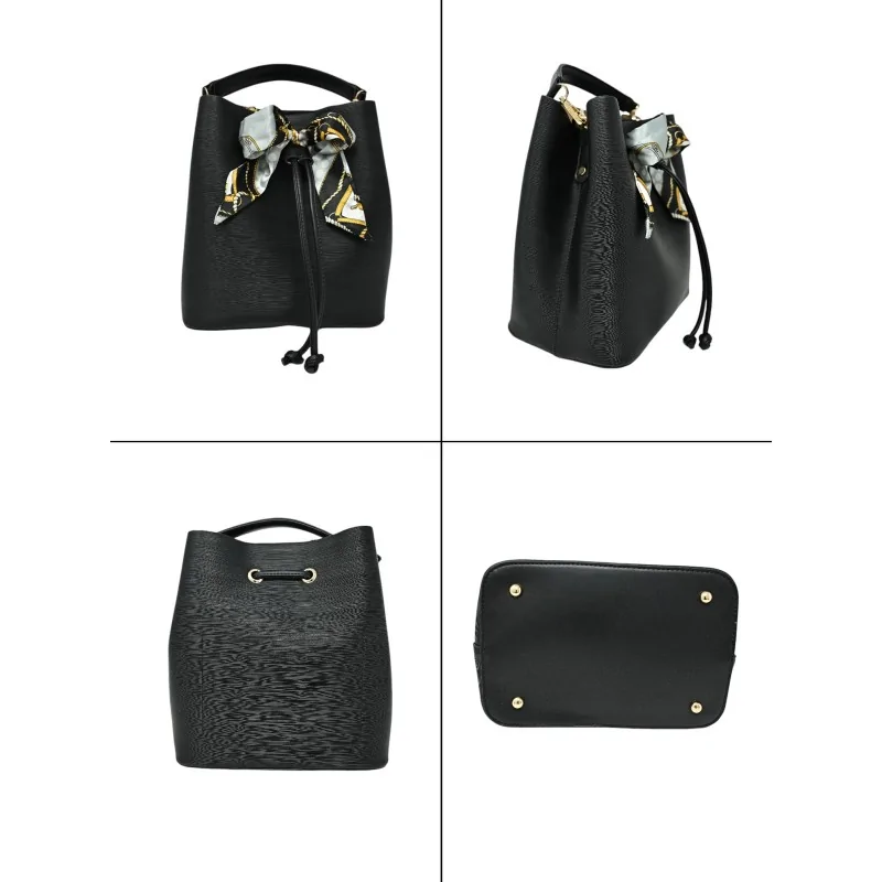 Questa borsa secchiello rigida del marchio Gallantry incarna la perfetta combinazione tra stile e praticità. Il suo design minimalista in nero le conferisce un'eleganza senza tempo, mentre il grazioso nodo foulard aggiunge un tocco di femminilità e originalità. Un vero e proprio accessorio moda versatile, questa borsa si adatterà a tutti i vostri outfit e occasioni, dal quotidiano alle uscite più eleganti.
