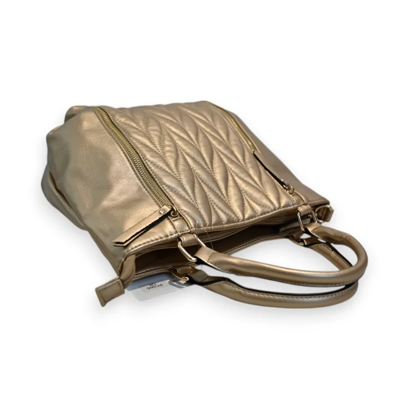 Il materiale sintetico facilita notevolmente la manutenzione quotidiana della borsa. Una semplice passata con un panno leggermente umido è sufficiente per mantenere il suo aspetto impeccabile. La qualità dei materiali utilizzati e la robustezza della costruzione garantiscono un'eccellente durabilità, anche in caso di uso intensivo. Il rivestimento resiste efficacemente ai graffi e conserva la sua lucentezza dorata nel tempo.
