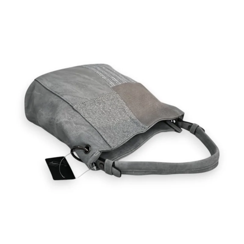 La borsa patchwork della collezione Mélanie Paris si distingue per il suo stile moderno e sofisticato. La composizione patchwork combina abilmente diverse texture di materiale sintetico grigio, creando un effetto visivo accattivante. Questa tecnica di patchwork minuziosa mette in risalto motivi geometrici armoniosi che conferiscono carattere all'accessorio. Le finiture curate e la qualità dei materiali utilizzati riflettono il know-how del marchio.