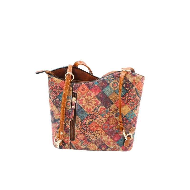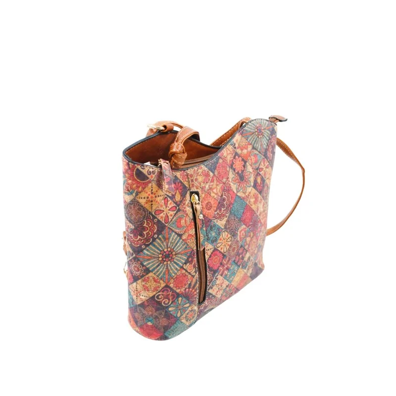 Questa borsa a tracolla in sughero, con un design squadrato e chic, è un accessorio elegante e versatile. La sua estetica è valorizzata da una sofisticata stampa geometrica che le conferisce un aspetto moderno e distintivo. Un elemento chiave del suo design è la fibbia dorata che decora la borsa, aggiungendo un tocco di lusso e raffinatezza. Per una massima adattabilità, questo modello è dotato di una tracolla removibile. Ciò consente di indossarlo in diversi modi, regolando la tracolla in base alle proprie esigenze e preferenze. Oltre alla tracolla, è presente una comoda maniglia situata nella parte superiore della borsa, che offre l'opzione di portarla a mano per maggiore comodità. L'interno della borsa è progettato per un'organizzazione efficiente con tre compartimenti distinti. Questa caratteristica rende la borsa ideale per mantenere i tuoi effetti personali ben organizzati e facilmente accessibili. Tra questi compartimenti, uno è specificamente dotato di una chiusura lampo, perfetto per conservare monete o altri piccoli oggetti di valore, garantendone la sicurezza. Con le sue compatte dimensioni di 21x16 cm, questa borsa è allo stesso tempo pratica e spaziosa, in grado di contenere i tuoi elementi essenziali senza essere ingombrante.