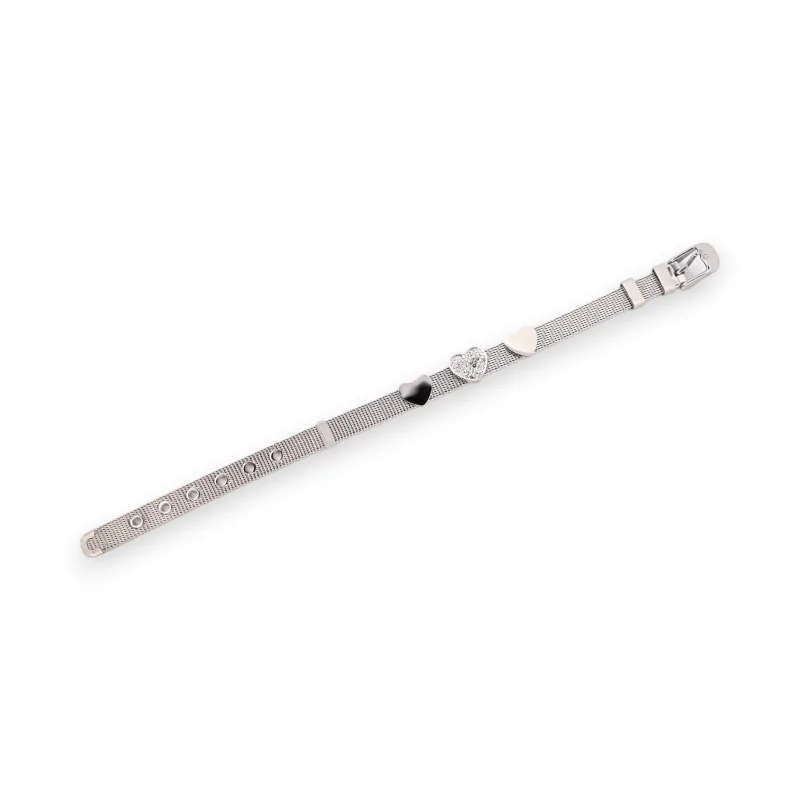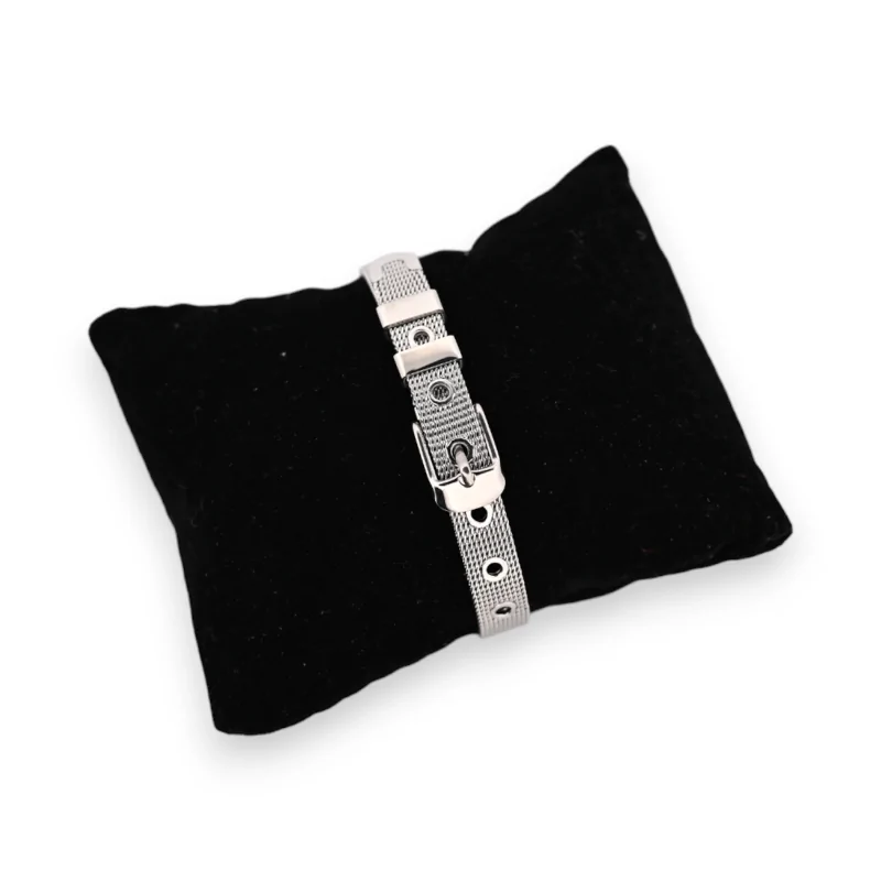 Questo braccialetto in acciaio argentato reinventa l'accessorio moderno con la sua struttura rigida e il suo design stellato affascinante. Tre stelle adornano il centro del braccialetto, creando un punto focale incantevole, in particolare con la stella centrale che brilla intensamente, riflette la luce e cattura l'attenzione. Innovativo, il suo sistema di chiusura prende in prestito dall'universo orologiero, unendo facilità d'uso e estetica raffinata. Misurando 21 cm, si adatta alla forma del polso con una precisione armoniosa, distinguendosi per la sua comodità e il suo aspetto eccezionale. Un gioiello ideale per coloro che cercano di combinare modernità e brillantezza.