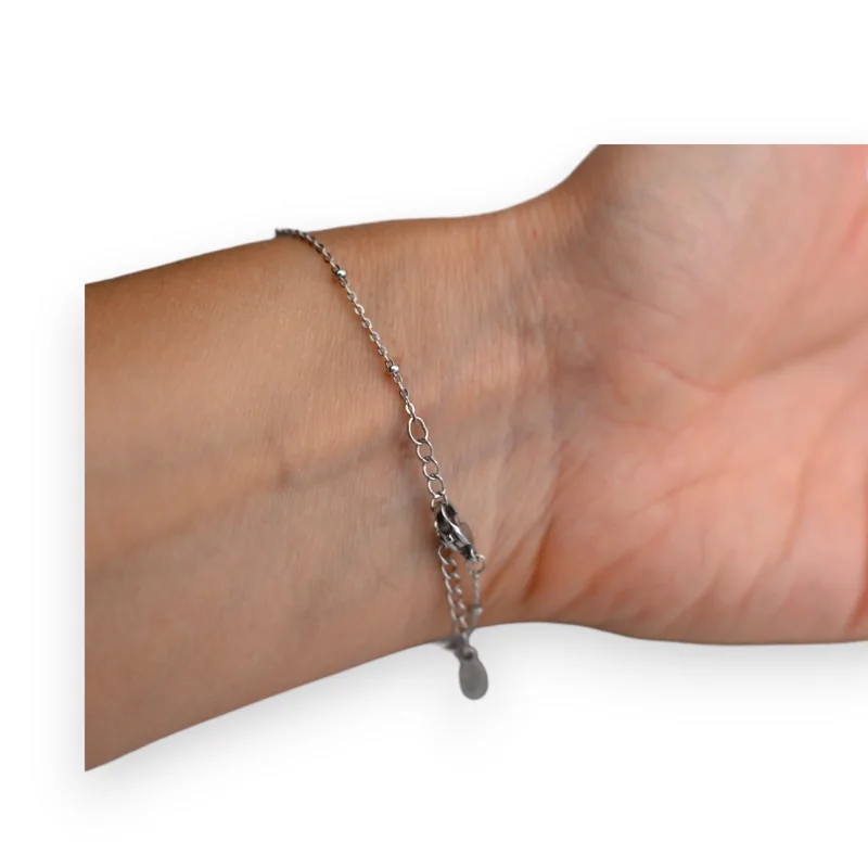 Questo bracciale in acciaio, con la sua catena argentata a maglia larga, è un meraviglia di design, offrendo una via di fuga verso un mondo di mistero ed eleganza. Al centro di questa affascinante creazione si trova un serpente in strass bianco scintillante, simbolo di trasformazione e rinascita, che troneggia maestosamente. Questa rappresentazione serpentina, incastonata con strass scintillanti, dona al bracciale un bagliore vibrante, catturando l'essenza stessa della potenza e del fascino. Con una lunghezza di 21 cm, questo gioiello si adatta graziosamente al polso, promettendo non solo un comfort supremo ma anche una presenza indimenticabile. Ideale per coloro che cercano di esprimere la loro forza interiore e la loro individualità, questo bracciale è un vero tesoro della collezione, invitando alla contemplazione e all'ammirazione.
