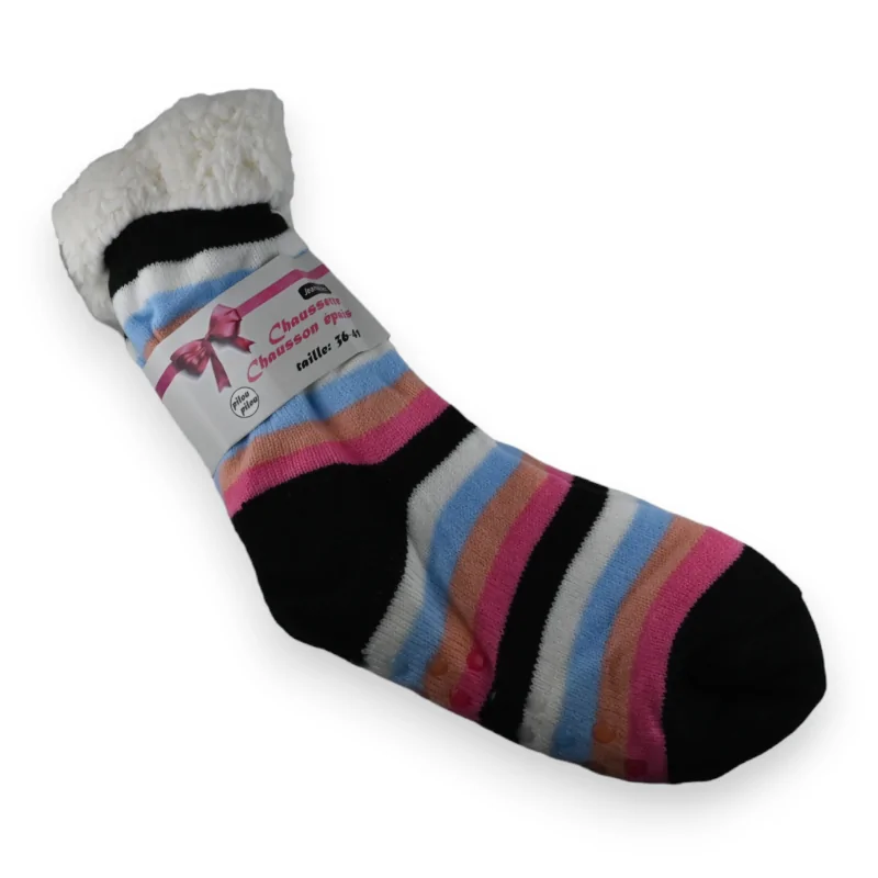 Lasciatevi sedurre dalle nostre calzine-pantofole in pilou, progettate per unire calore, comfort e stile. La loro tessuto spesso avvolge i vostri piedi in una morbidezza incomparabile, ideale per i momenti di relax. La stampa nera punteggiata di pois bianchi aggiunge un tocco di originalità sottile, rendendo ogni passo allo stesso tempo elegante e ludico. Pensate per le misure che vanno dal 36 al 41, queste calzine-pantofole combinano funzionalità ed estetica per il vostro più grande piacere.
