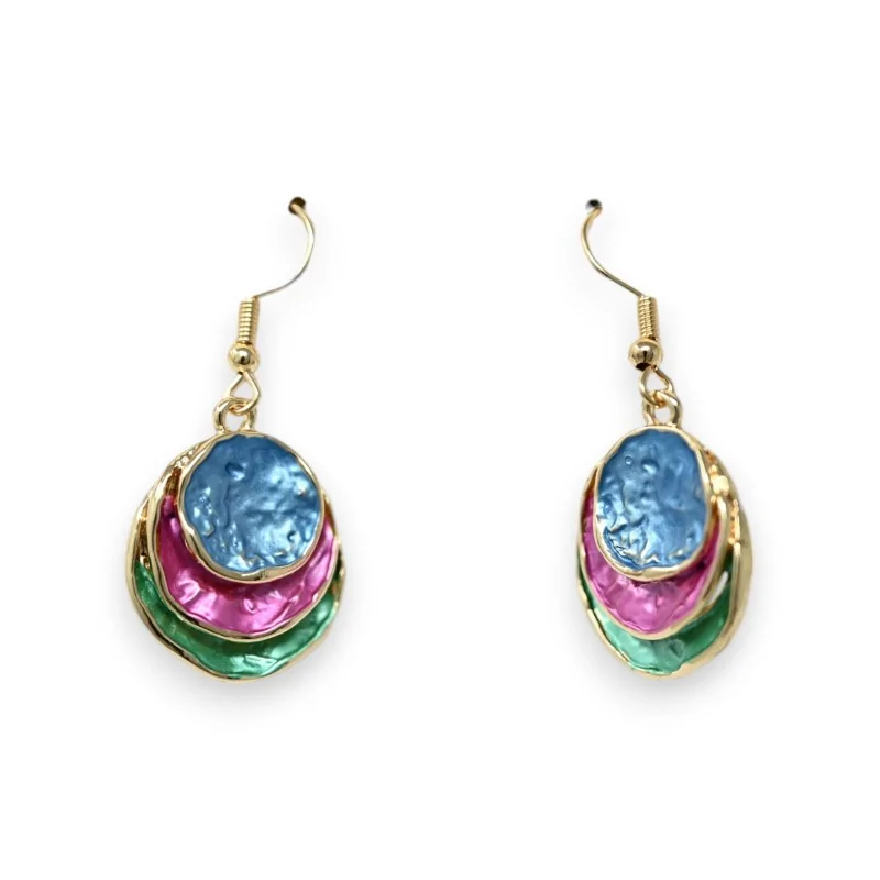 Colpo di cuore assoluto di Nanamode, questo gioiello fantasia è un'ode alla vivacità e all'originalità, progettato per coloro che desiderano mostrare la loro singolarità con panache. Gli orecchini, perfettamente abbinati, presentano una serie di cerchi in rilievo, ognuno immerso in una tavolozza di colori vivaci e brillanti, evocando la diversità e la bellezza della bella stagione. Poggiate su un guscio di metallo dorato, questi pezzi chic e glamour promettono di illuminare il tuo volto con un'aura di gioia di vivere. Grazie a una piccola prolunga astutamente integrata, avrai la libertà di personalizzare la lunghezza del gioiello per farlo combaciare perfettamente con il tuo abbigliamento e la tua silhouette. Invita un soffio di freschezza e audacia nella tua collezione di accessori con questo gioiello selezionato da Nanamode, e lascia che il tuo stile parli in modo colorato e ispirante.