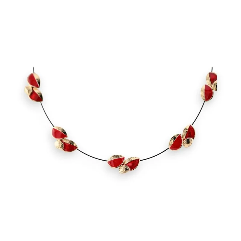 Ikita utilizza materiali accuratamente selezionati per garantire la durata e la bellezza dei suoi gioielli. Il metallo dorato del ciondolo è trattato per resistere all'usura del tempo e mantenere la sua lucentezza. Gli elementi rossi sono realizzati con materiali di alta qualità, assicurando un colore vibrante che non sbiadirà. Il cavo nero è sia robusto che flessibile, offrendo un comfort ottimale quando si indossa la collana.