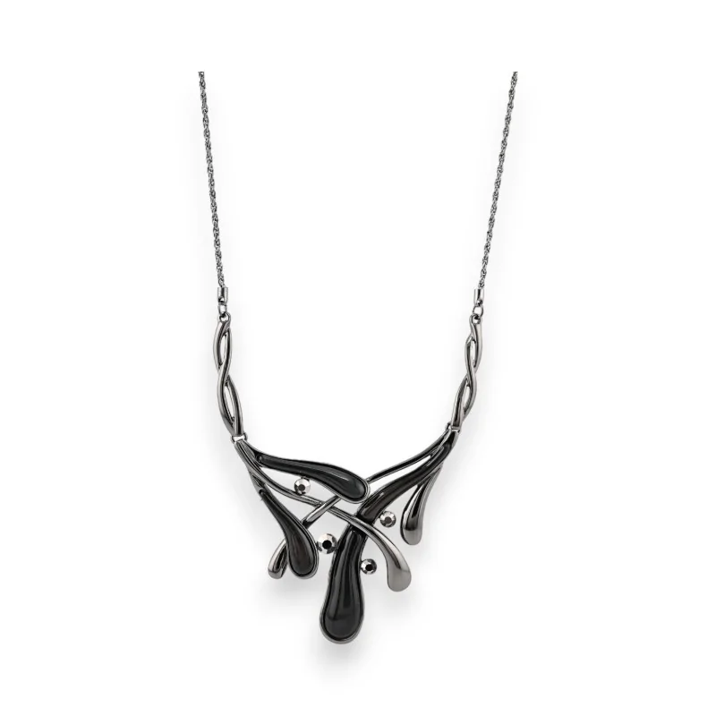 Questa collana fashion del marchio Belle Miss unisce eleganza e originalità. Il suo ciondolo design nero si stacca con stile su una catena in metallo grigio scuro. Regolabile grazie alla sua catenina di prolunga, si adatta a tutti gli stili per impreziosire i vostri outfit. Un gioiello di tendenza che non mancherà di attirare gli sguardi.