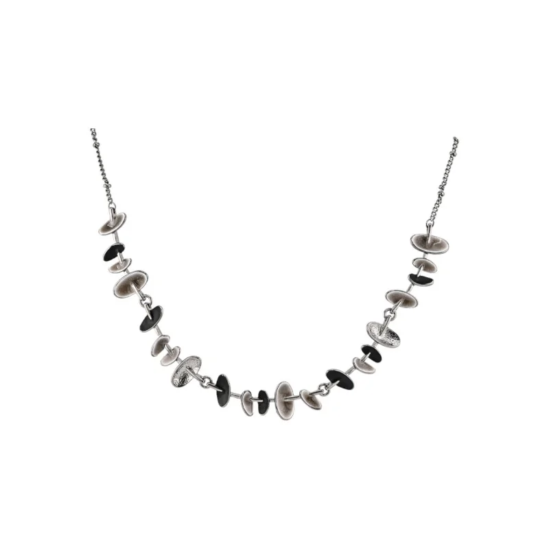 Questa collana di bigiotteria del marchio Ikita combina eleganza e modernità. Composta da piccoli ciondoli grigi e neri di diverse dimensioni, offre un look unico e raffinato. La sua catena in metallo grigio scuro di 18 cm, con un'estensione di 8 cm, permette una regolazione perfetta per tutte le corporature. Un accessorio di tendenza che sublimerai i tuoi outfit quotidiani così come i tuoi look da sera.